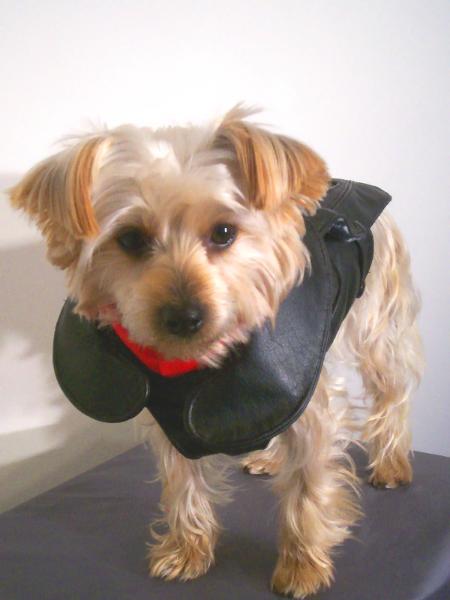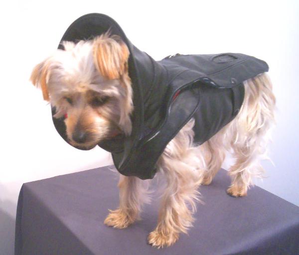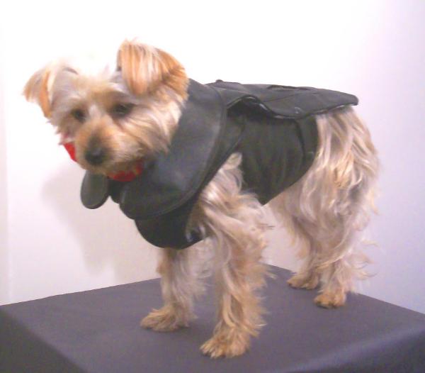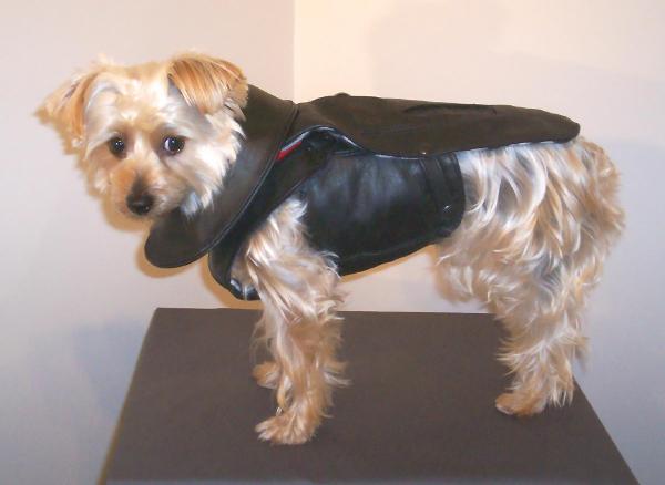 Black leather coat and harness lined