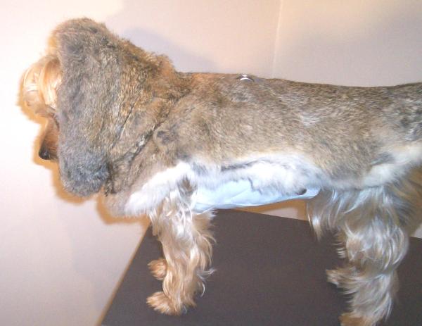 of rabbit fur lined in metallic tapestry, Shown